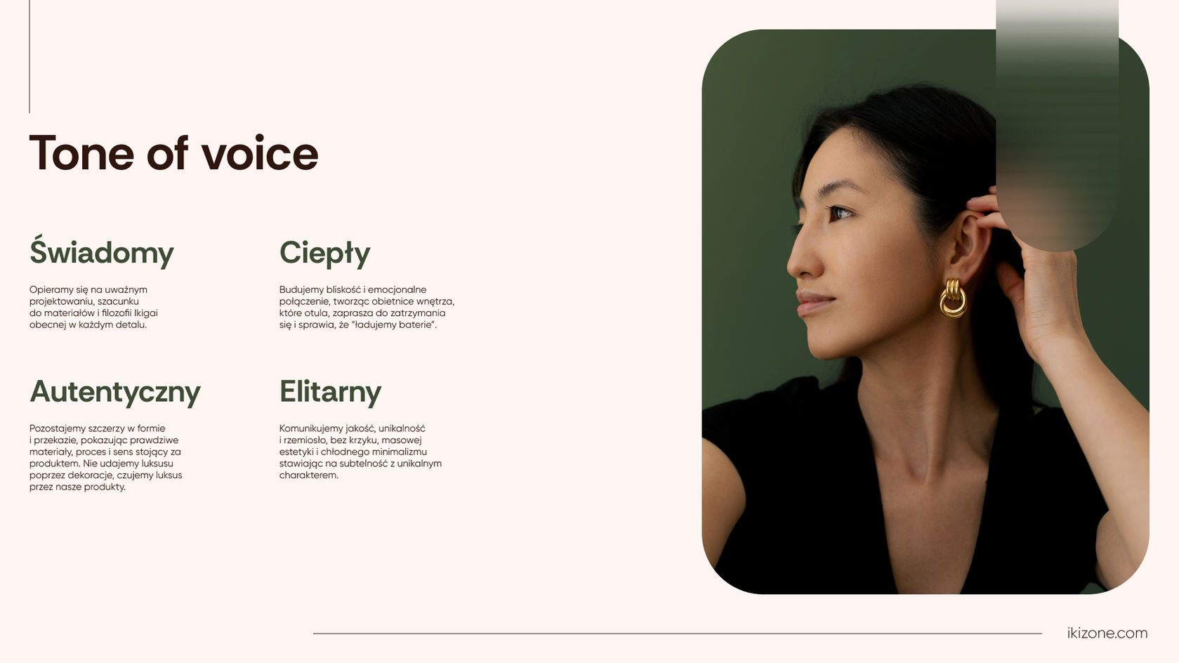z naciskiem na minimalistyczny styl, komfort zakupów oraz wyróżnienie unikalnego charakteru marki.